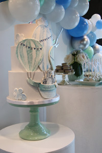 Para este baby shower preparámos algo bem especial... Uma mesa de bolo desconstruída, com todos os elementos para tornar a festa mais doce, uma mesa de salgados recheada de fingerfood deliciosa e, claro, muuuuitos balões! Desta vez, arriscámos e fizemos um balão de ar quente estruturado com balões. Na nossa opinião, complementou o ambiente na perfeição.